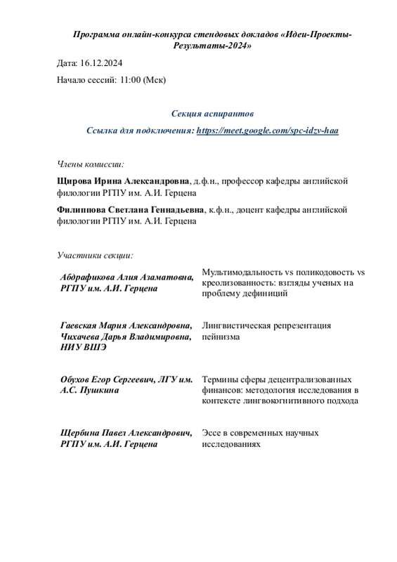 Организатор - кафедра английской филологии РГПУ им. А.И.Герцена