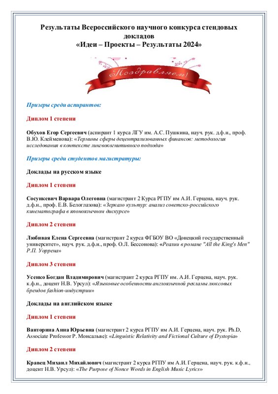 Результаты Конкурса Идеи Проекты Результаты 2024