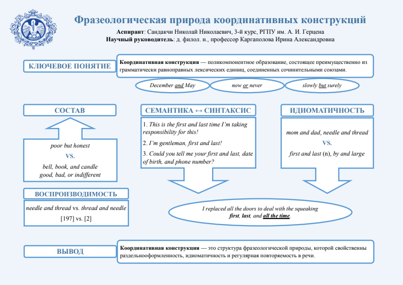 Сандакчи Николай Николаевич, аспирант 3-го курса РГПУ им. А. И. Герцена. "Фразеологическая природа координативных конструкций"