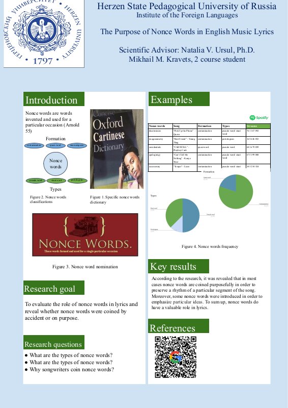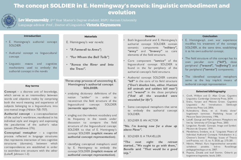 Elizaweta Polikarpova, 2nd Year Master’s Degree student, RGPU Herzenz University